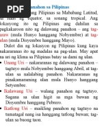 Alcaldia - Ito ang mga lalawigang nasupil. May dalawang uri ng panahon sa PilipinasNagsisimula ang tag-araw sa buwan ng Nobyembre at nagtatapos sa AbrilAng tag-ulan ay panahon ng mga bagyo at bahaAng pinakamainit na buwan ay Marso at Abril at ang pinakamalamig naman ay DisyembreEnero at Pebrero. Filipino Language and Culture.