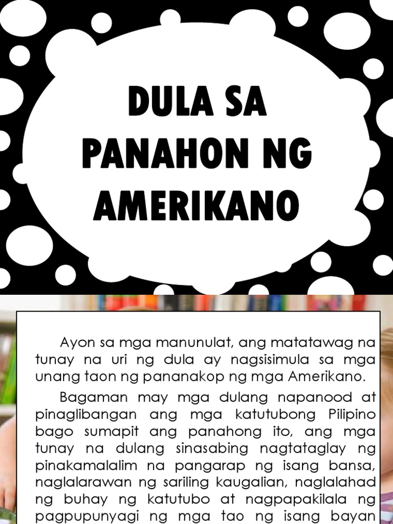 Importante ito hanggang ngayon sa ating buhay. Kahit sila ay sinakop ay napreserba at naipasa pa rin nila sa ibang henerasyong ang. A n g Sars uwela sa Panahon n g A me r ik a n o Tunay na makulay at mayaman ang tradisyon ng dulaan sa ating bansa.