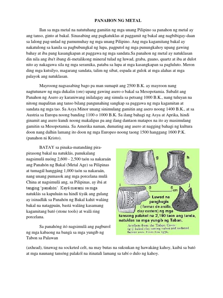 Panahon Ng Metal Ilan Sa Mga Metal Na Natutuhang Gamitin Ng Mga Unang Pilipino Sa Panahon Ng Metal Ay Ang Tanso Ginto