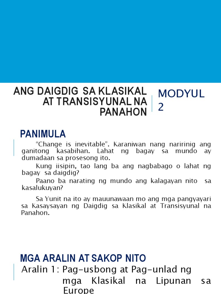 Modyul2 Angdaigdigsaklasikalattransisyunalnapanahon
