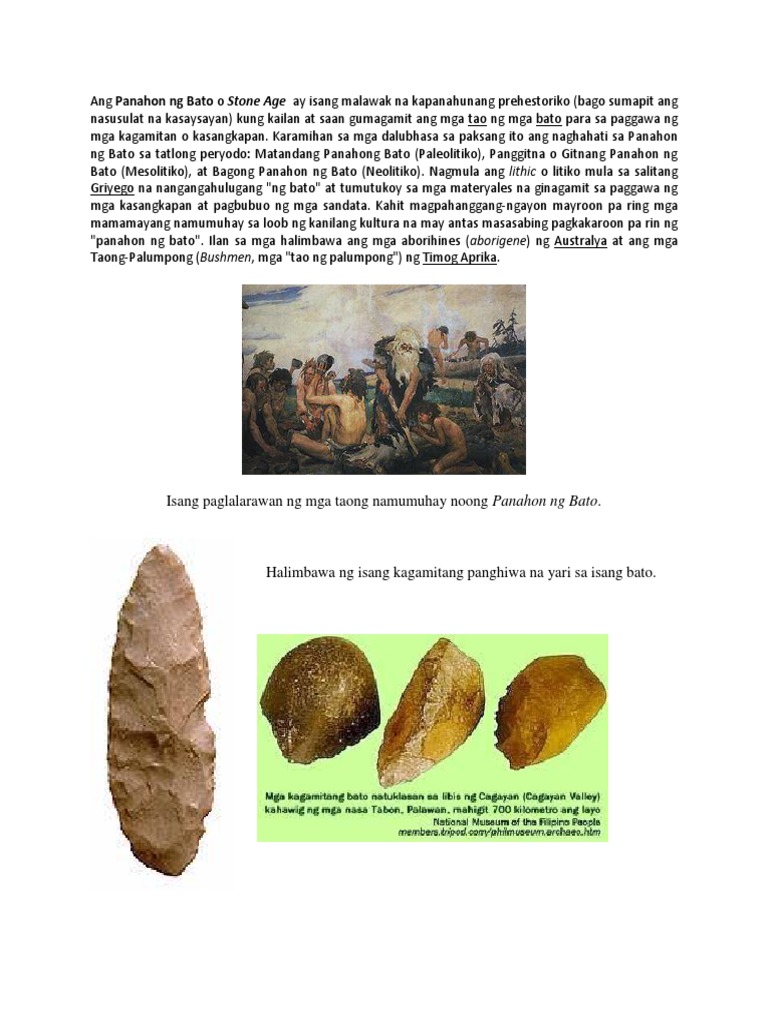 832014 Panahon ng lumang bato. Tinatawag din bilang flint tools ang mga kagamitang batong ito ay sinasabing nagpadali sa ilang prosesong ginagawa ng mga katutubo sa panahong paleolitiko lalo na sa pagkuha at paghahanap ng pagkain. Ang mga bato ay hinuhugis nila upang maging matulis at magamit.