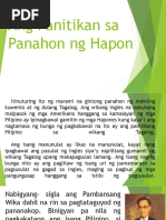 Ang wikang Ingles nanakuhang maipasok ng mga Amerikano hanggang sa kamalayan ng mga Pilipino ay ipinagbawal gamitin ng mga Hapones kung kayat ang nagtamasa ng bunga ng pagbabawal na ito ay ang panitikang Pilipino sa wikang Tagalog. PANAHON NG PAGBABAG 2. View Panahon-ng-pagbabagong-isip-kabanata-4pptx from CS 325 at AMA Computer University - Olongapo.