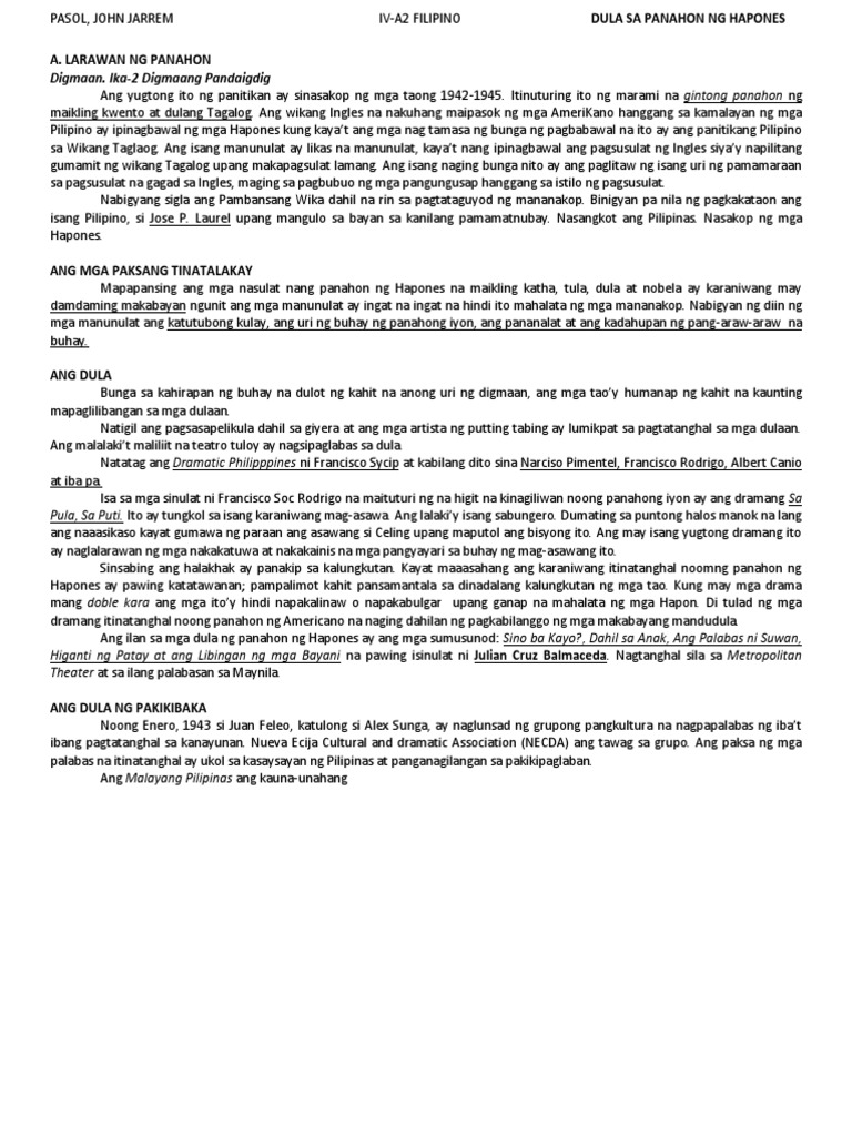 Pasol John Jarrem Iv A2 Filipino Dula Sa Panahon Ng Hapones