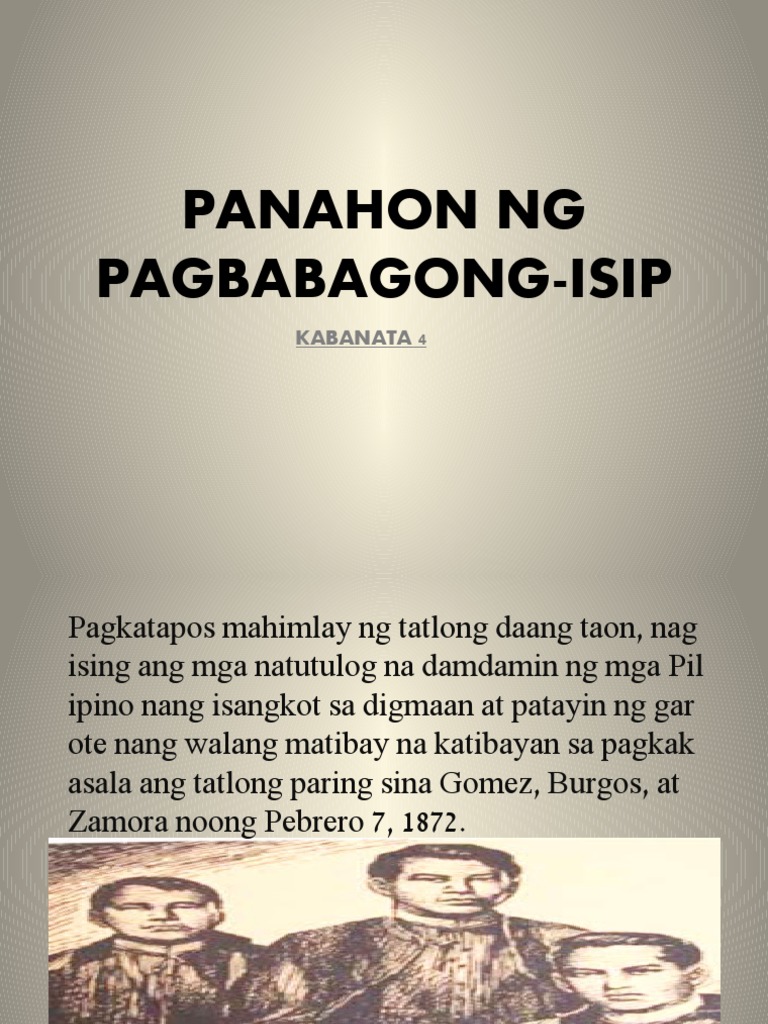 Marami ang mga naging akda sa panahong ito. Kabanata IV Panahon ng pagbabagong isip KALIGIRANG KASAYSAYAN Kaligirang kasaysayan Pagkatapos nang higit sa tatlong daang taon nagising sa pagkakahimlay ang mga natutulog na damdamin ng mga Pilipino nang isangkot sa digmaan sa. Bakit tinawag na panahon ng pagbabagong isip ang panahong ito.