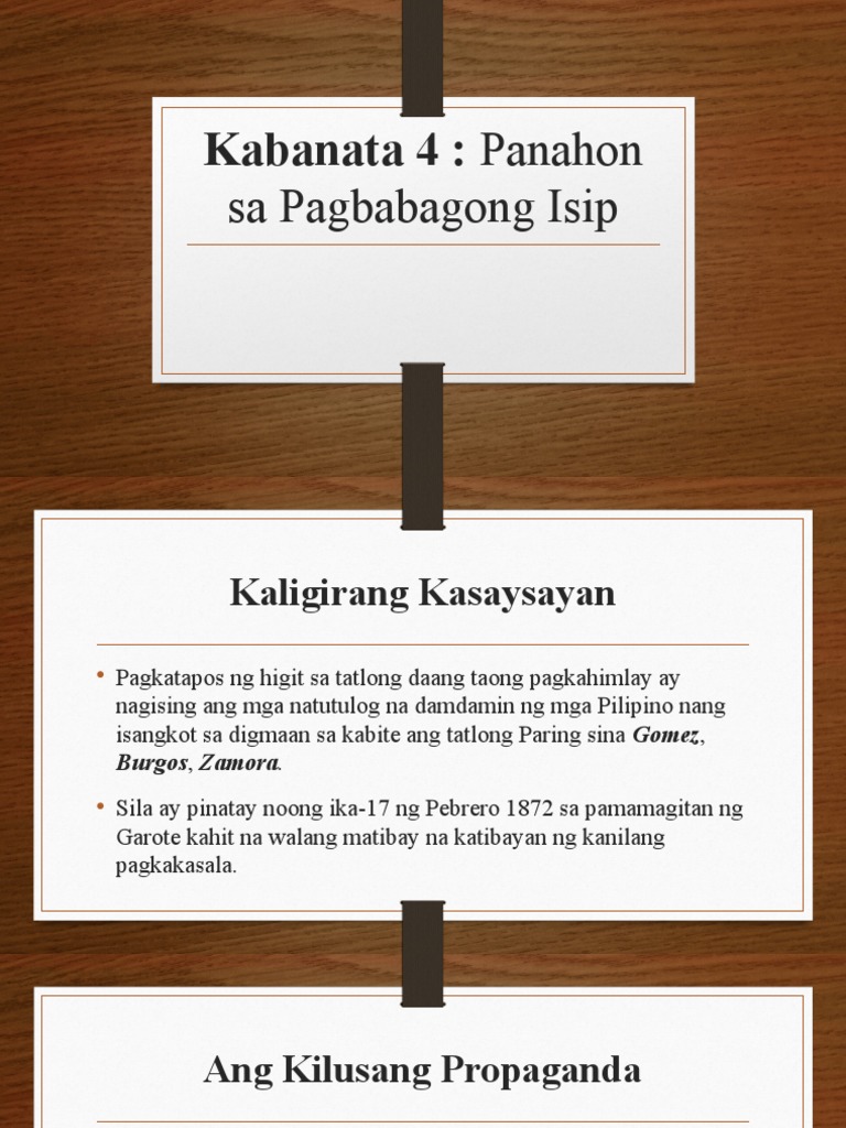 Ang panahong ito ay nahahati sa dalawa- Panahon ng Propaganda 1872 - 1896- Panahon ng Tahasang Paghihimagsik 1872 - 1896 Dahil sa kilusang Propaganda Pagkatapos ng higit sa tatlong daang taong pagkakahimlay ay. Kaligirang Kasaysayan - Pagkatapos ng higit sa. Tatlong paring martir noong pebrero 17 1872.