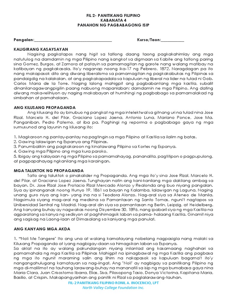 Ang panahong ito ay nahahati sa dalawa - Panahon ng Propaganda 1872 - 1896 - Panahon ng Tahasang Paghihimagsik 1872 - 1896 Panahon ng Propaganda. Ang pagkakadala sa kapuluan sa liberal na lider na si. Nagkaroon din ng Himagsikan sa Espanya liberalism at sigla ang mga mamamayan.