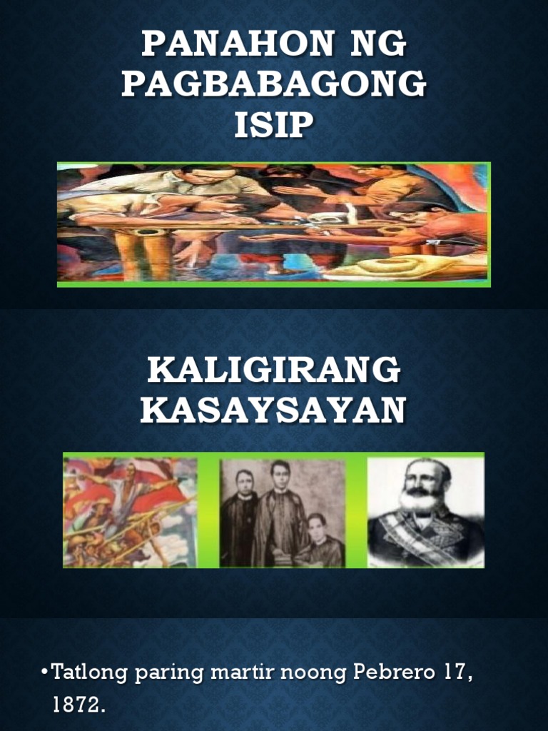 Kabanata IV Panahon ng pagbabagong isip KALIGIRANG KASAYSAYAN Kaligirang kasaysayan Pagkatapos nang higit sa tatlong daang taon nagising sa pagkakahimlay ang mga natutulog na damdamin ng mga Pilipino nang isangkot sa digmaan sa. PANAHON NG PAGBABAGONG ISIP. Quizlet flashcards activities and games help you improve your grades.
